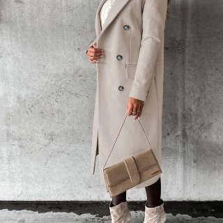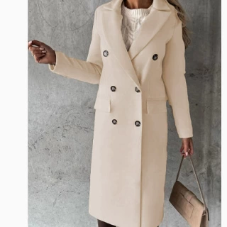 Double Breasted Lapel Coat Winter Fashion Solid Slim Long Jacket Long Sleeve Tops Womens Clothing