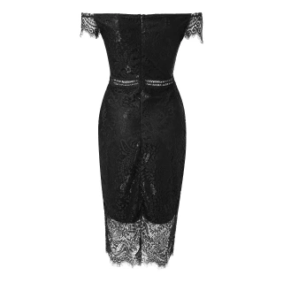 Elegant Lace Evening Dress Women Wedding Party V Neck Off Shoulder Dress Sexy Hollow Out Office Ladies Bodycon Formal Dresses