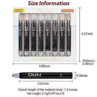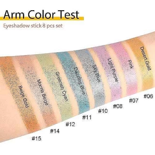 ??¡¼8 PCS Eyeshadow Stick Set¡½8 classic colors,including White Matte,Brown Gold Shimmer,Mermaid Pink Shimmer,Dark Purple Shimmer,Bronze Shimmerr and Black Shimmer,can be used to create smoky,sultry,luminous,metallic finish,and also works well as a highlighter and Eyeliner Pencil.